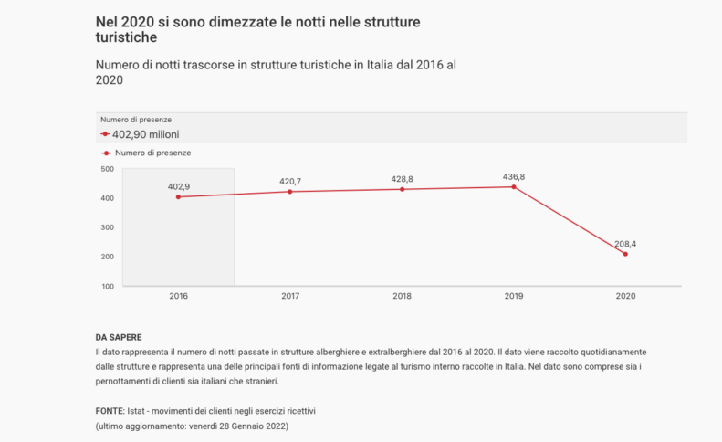 Il calo di presenze turistiche nel 2020