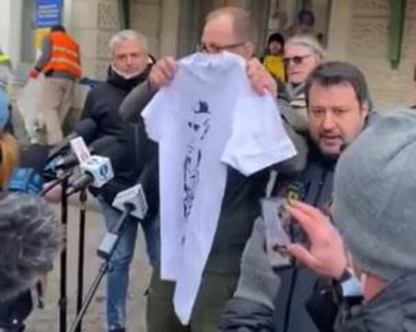 «Noi siamo qui per salvare le persone». In un video finito sui social si vede Matteo Salvini replicare così al sindaco di Przemysl, in Polonia, Wojciech Bakun, che gli mostra una maglietta con il volto di Putin, ricordandogli la sua vicinanza con il leader russo, e invitandolo ad andare al confine per condannare il numero uno di Mosca. Salvini prova a spiegare al primo cittadino del paese di confine con l’Ucraina che la sua missione è per la pace, parlando sempre in inglese dice: «Sorry, we are here to help childrens…». «Non la ricevo», dice il sindaco allontanandosi, come mostra il video pubblicato dal consigliere comunale Paweł Zastrowski.