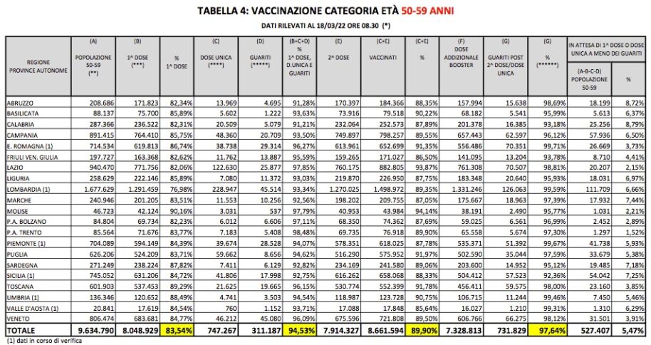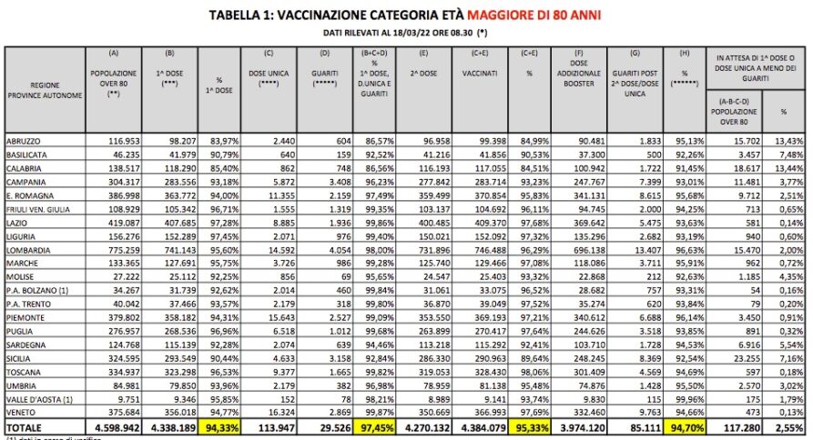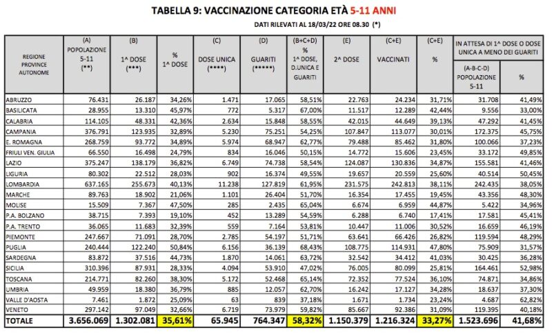 CATANZARO La Calabria è una delle regioni con le maggiori “scoperture” nelle vaccinazioni anti Covid 19. Il dato emerge dall’ultimo report settimanale del commissario per l’emergenza, pubblicato sul sito del governo. Dall’analisi delle tabelle prodotte dalla struttura commissariale, emerge anzitutto che la Calabria presenta le più alte percentuali di cittadini senza prima dose in tre fasce di età, quella over 80 (il 13,44%, pari a oltre 18,6mila calabresi, mentre la media nazionale è del 2,55%), la fascia di età 70-79 anni(l’8,33%, pari a oltre 15mila calabresi, mentre la media nazionale è il 3,90%) e la fascia di età 50-59 anni (qui i calabresi senza prima dose sono il 6,20%, oltre 15mila, mentre a livello nazionale la percentuale di “scopertura” è il 5,47%). Nelle altre fasce d’età la Calabria ha “scoperture” superiori alla media nazionale ma almeno non è all’ultimo posto, anche se resta sempre nei bassifondi: a esempio, nella fascia di età 40-49 non hanno fatto la prima dose di vaccino anti Covid oltre 28mila calabresi, pari all’11,05% (la media nazionale è l’8,90%), nella fascia di età 30-39 non hanno fatto la prima dose oltre 25mila calabresi, pari all’11,28% (media nazionale 7,20%) e nella fascia di età 20-29 anni non hanno fatto la prima dose il 9,41% (media nazionale 3,80%). Quando alle fasce d’età più basse, in quella 12-19 anni non hanno fatto la prima dose il 7,64%, di poco superiore alla media nazionale mentre nella fascia 5-11 anni i calabresi senza prima dose sono oltre 47mila, pari al 41,45% (inferiore però alla media nazionale e alla percentuale di 13 regioni). (redazione@corrierecal.it)