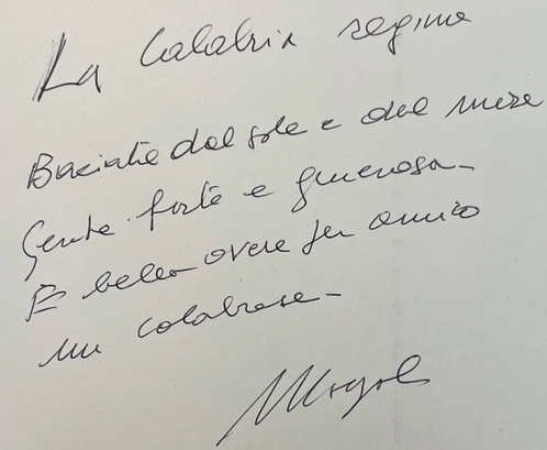 Il celebre paroliere di Lucio Battisti, ha poi lasciato una dedica speciale: «La Calabria regione baciata dal sole e dal mare. Gente forte e generosa. È bello avere per amico un calabrese».