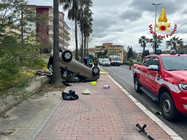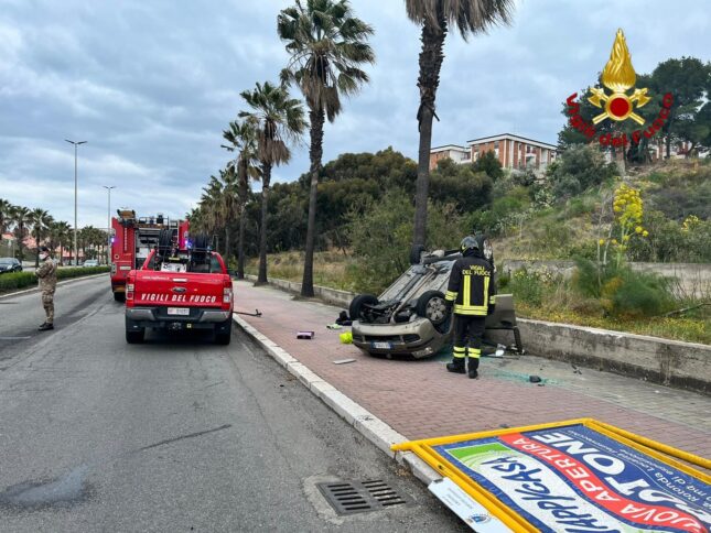 Crotone, auto si ribalta con a bordo quattro persone: un ferito trasportato in ospedale – FOTO E VIDEO