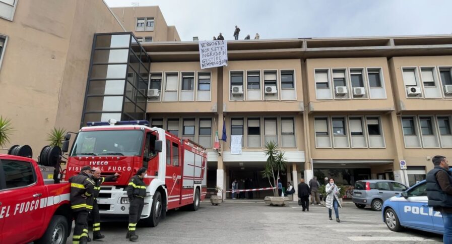 «Siamo in attesa di notizie – racconta uno dei lavoratori, Orazio Urso, ai microfoni de L’altro Corriere Tv – da quando è stata aperta la busta di questa gara ponte bandita dall’Asp. Viviamo in una fase di stallo da quale sembra impossibile uscirne. L’8 aprile, la prima volta che siamo saliti sul tetto, ci avevano informato che il 13 aprile si sarebbero aperte le buste con la tempestiva assegnazione del servizio mensa e l’assunzione dei lavoratori storici ex Siarc. Sono passati altri otto giorni, quelle buste sono state aperte, il servizio è stato aggiudicato provvisoriamente alla ditta Ladisa di Bari ma a tutt’oggi non siamo stati convocati da nessuno, né dall’Asp né dalla nuova azienda e quindi siamo stati costretti a tornare sul tetto dell’ospedale».