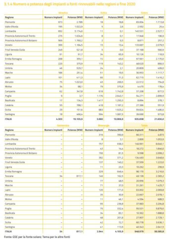 In particolare, secondo quanto riportato nel rapporto, risultano con procedure aperte progetti per realizzare centrali eoliche da 25 GW e 34 GW per impianti fotovoltaici.
