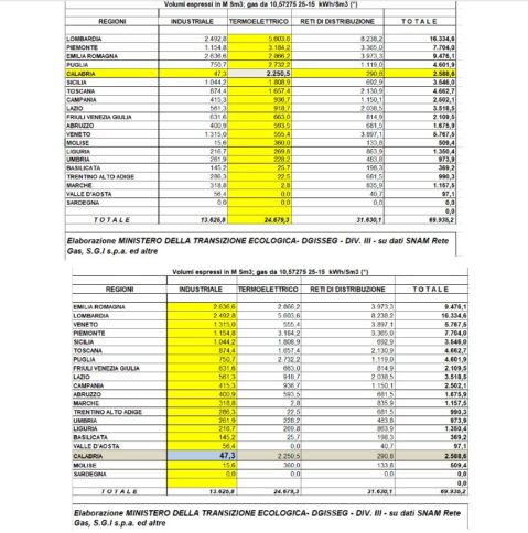 «Il problema non riguarda purtroppo solo la Calabria, ma anche la Calabria. Il primo problema lo pongono gli ignari cittadini che sono preoccupati dagli effetti sul paesaggio dovuti alla presenza delle torri eoliche, e non si accorgono che la Calabria, per consumo di gas per la generazione di energia elettrica, è la quinta regione in Italia e solo terzultima per consumi di gas per attività industriali come viene evidenziato dal MiSE (tabelle riportate in seguito, ndr)».