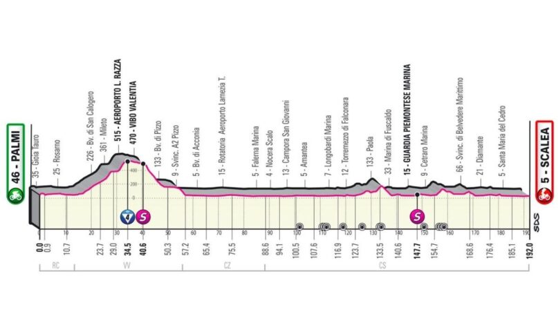 SCALEA Si è conclusa a Scalea la prima tappa calabrese del Giro d’Italia che è partita stamattina da Palmi. I ciclisti dopo la partenza programmata alle 12,35 da piazzale Trodio della cittadina della costa reggina hanno percorso 192 chilometri per arrivare a Scalea.