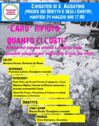 COSENZA Negli ultimi anni è andata intensificandosi la discussione sulla necessità di ridurre le emissioni climalteranti con un coinvolgimento di tutti gli attori disponibili a partire dai livelli di governo del territorio al singolo cittadino. Uno dei processi più impattanti per l’ambiente è rappresentato dalla gestione dei rifiuti domestici, per cui sono previsti dal Piano nazionale di ripresa e resilienza (Pnrr) circa 2 miliardi di euro. Una parte degli investimenti e delle riforme previste è legata al potenziamento della raccolta differenziata, allo scopo di renderla sempre più capillare ed efficiente e con l’obiettivo di colmare le differenze tra i territori. Una corretta gestione del riciclo dei rifiuti consente il risparmio di risorse e la riduzione dell’inquinamento, oltre a migliorare la pulizia e la salubrità delle città. I costi del sistema di gestione dei rifiuti, però, sono molto alti e hanno un impatto sui contribuenti. Il dibattito organizzato per martedì 24 maggio, alle ore 17, chiostro di Sant’Agostino-Museo dei Bretti e degli Enotri, si pone come obiettivo quello di avviare una discussione costruttiva sul ciclo dei rifiuti e la tariffa corrispondente per il servizio. L’iniziativa prevede la partecipazione dei cittadini che avranno modo di esprimere la loro opinione sull’attuale gestione del servizio e suggerire nuovi approcci metodologici. Focus dell’incontro, dunque, è individuare soluzioni applicabili per migliorare la qualità del servizio, incidendo anche sulla riduzione dei costi per i contribuenti. Alla tavola rotonda parteciperanno i docenti universitari esperti in materia, Paolo Veltri e Massimo Migliori, i consiglieri comunali Bianca Rende e Francesco Luberto, e Maria Pia Funaro vicesindaco di Cosenza.