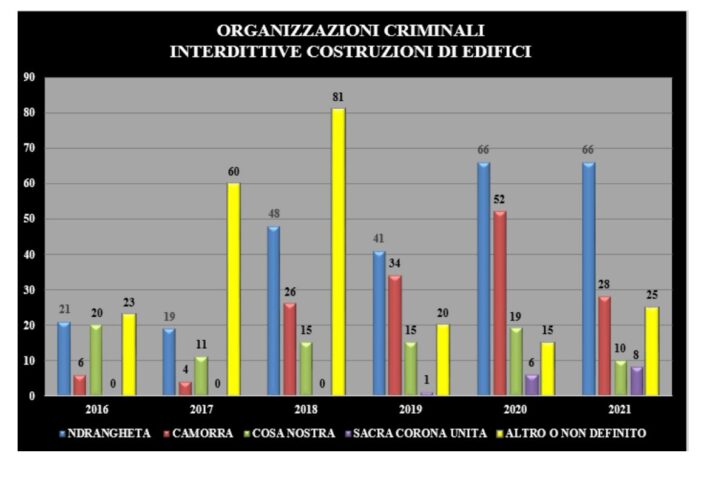In primis la ‘ndrangheta, appunto. Un dato su tutti a questo proposito deriva dall’analisi delle interdittive antimafia emesse tra il 2016 e il 2021 nel settore edilizio, cioè quello più sensibile al tema degli appalti pubblici e dei relativi subappalti.