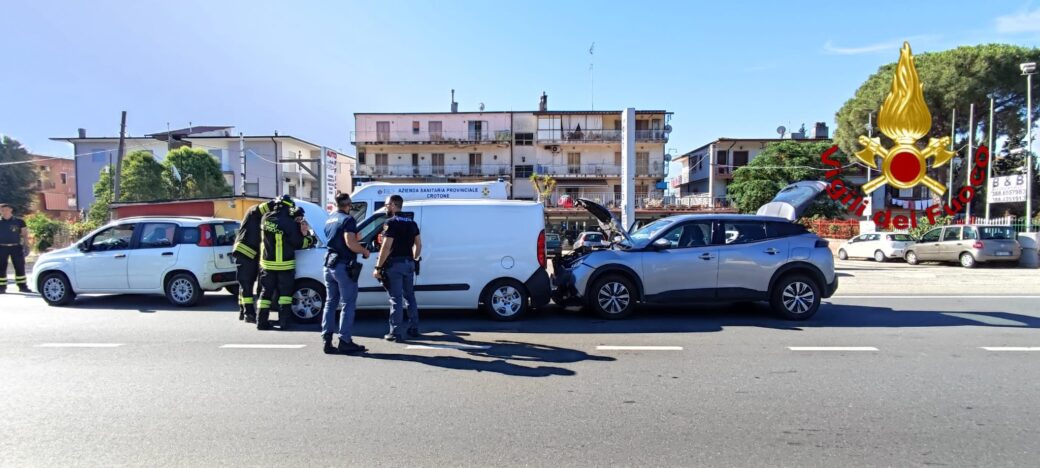 CROTONE Tamponamento a catena questa mattina, per fortuna senza particolari conseguenze, sulla Strada statale 106 in località Poggio Pudano. Sono state coinvolte nell’urto tre auto vetture: una Fiat Panda, un Suv Peugeot e una Opel Combo. È accaduto questa mattina intorno alle ore 8.30, quando una chiamata è giunta alla sala operativa dei Vigili del fuoco del Comando provinciale di Crotone per segnalare l’incidente stradale all’ingresso sud della statale per Crotone.