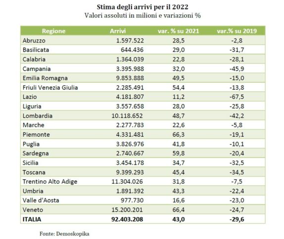 In particolare, l’istituto di ricerca nel corso della sua ultima indagine, prevede 6.529.552 presenze in Calabria con una crescita del 27,3% rispetto allo scorso anno. Così come lo stesso sondaggio, stima in 1.364.039 gli arrivi nella regione con un incremento del 22,8% nel confronto con il 2021.