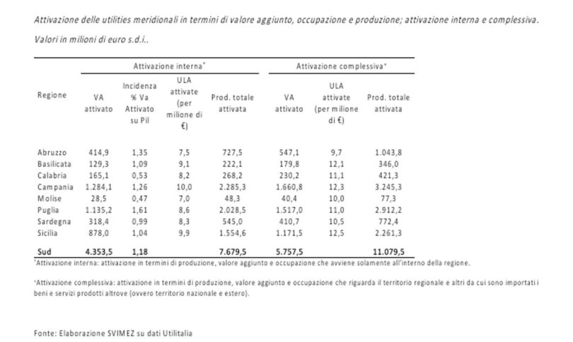 Ma le aziende meridionali, fanno rilevare gli analisti, sono importanti attivatori di produzione e occupazione anche per le regioni del Centro-Nord. Nelle regioni del Sud, infatti, per ogni milione di euro di produzione realizzata dalle utilities locali si attivano dai 7 ai 10 addetti; accanto a questi, si creano da 2 a 3 posizioni lavorative aggiuntive nelle regioni del Centro-Nord. In altri termini, per ogni milione di euro di produzione realizzata dalle utilities meridionali, in media una quota prossima al 30 per cento del valore dell’attivazione di occupazione interna alle regioni meridionali va a beneficio delle regioni centro-settentrionali.