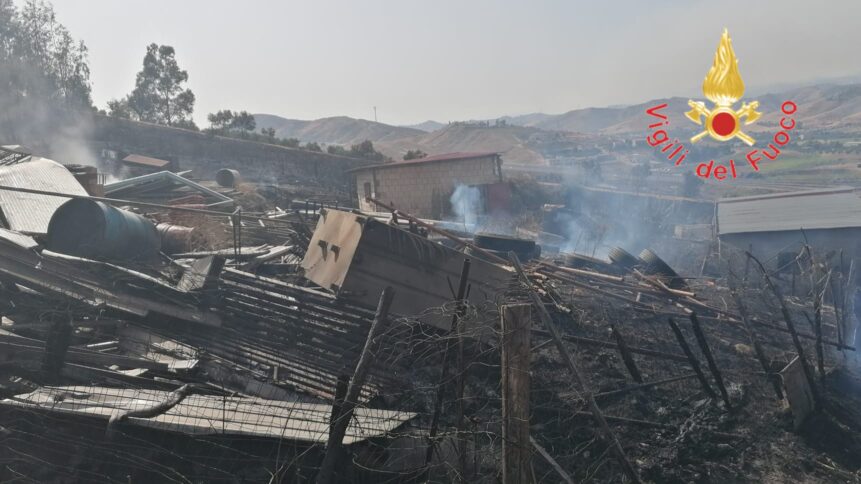 Lavoro intenso dei vigili del fuoco. Nel Catanzarese sono trenta i roghi. Distrutto un ricovero per ovini e bovini