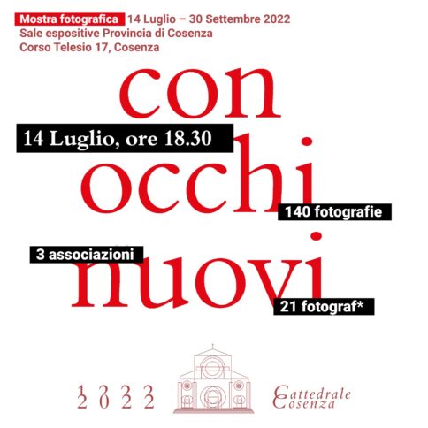 COSENZA In occasione delle celebrazioni degli 800 anni della Cattedrale di Cosenza, giovedì 14 luglio 2022 alle ore 18,30, sarà inaugurata la mostra fotografica Con occhi nuovi. Fotografare e capire, promossa dall’associazione 8centoCosenza APS, nelle sale espositive della Provincia di Cosenza (ex MAM). In particolare, l’esposizione che durerà fino al 30 settembre 2022, intende presentare al pubblico una visione inedita della Cattedrale di Cosenza. Guardare con occhi nuovi ciò che si pensa di conoscere già. Meravigliarsi di fronte al consueto. Riscoprire il fascino di ciò che ci è affianco da sempre. Mettere in evidenza nuove forme di racconto della Cattedrale e dei suoi vari aspetti “fisici” certamente, ma anche dei vari universi sociali e umani che ad essa fanno riferimento, così come del contesto in cui è immersa. Attivare occhi e sensibilità capaci di generare nuovi racconti su un bene così centrale della storia e della vita cittadina. 8centoCosenza aps ha chiesto alle associazioni di fotografi cosentine di dare forma a un progetto a partire da questi pensieri, facendo appello alle loro sensibilità, vissuti, saperi e tecniche. Per costruire un racconto corale, inedito, contemporaneo, empatico e coinvolgente come il linguaggio fotografico è capace di fare. Nitida, l’Impronta e Ladri di luce hanno accettato l’invito-sfida. L’esposizione, nata da un’idea di Aldo Presta, il cui progetto grafico e di comunicazione visiva è stato realizzato da Francescopaolo Amendola – Studio Nua e l’allestimento da Emilio Salvatore Leo e Rubettino Print, sarà strutturata in tre sezioni ognuna delle quali dedicata al progetto di ciascuna associazione fotografica. La visita gratuita alla mostra sarà accessibile dalle ore 10.00 alle ore 14.00 e dalle ore 16.00 alle ore 20.00 dal lunedì al venerdì (sabato e domenica su prenotazione).