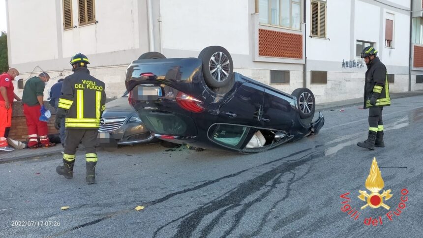 Auto si ribalta in pieno centro a Catanzaro: ferito un giovane – FOTO