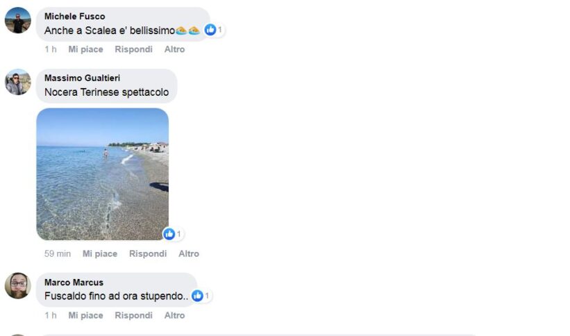 Da Nocera Terinese, nel Catanzarese, fino a Scalea e Praia a Mare, lungo la costa del Tirreno cosentino è un susseguirsi di commenti entusiastici sulla bontà delle acque riscontrate in questa afosa giornata di luglio.