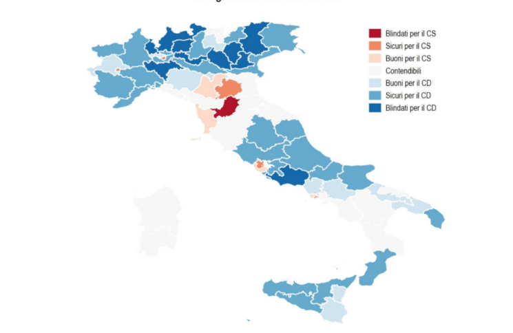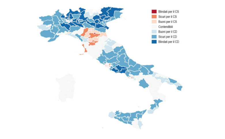 Nella quota riservata all’uninominale, a parte i collegi storicamente appannaggio della sinistra nella “cintura rossa” e nelle grandi città, il centrodestra prevarrebbe in circa il 70 per cento dei casi, a comporre la forte maggioranza di cui parla l’Istituto Cattaneo.
