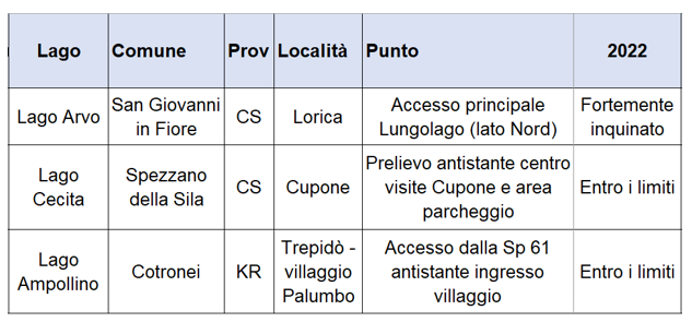 Stesso giudizio per il prelievo effettuato sul Lago Cecita, nel tratto di lago antistante centro visite Cupone, nel comune di Spezzano della Sila.