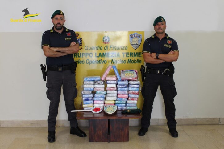 LAMEZIA TERME Cinquanta panetti di cocaina per un totale di 60 chili di polvere bianca. È questo il ritrovamento effettuato dai militari del Nucleo operativo e Nucleo Mobile del Gruppo di Lamezia Terme nell’intercapedine dell’auto di un uomo di 53 anni, Castrese Vallifuoco, di Napoli, incensurato. L’uomo viaggiava sull’autostrada A/2 vicino allo svincolo di Lamezia quando è stato fermato dalle fiamme gialle impegnate in servizi di prevenzione crimine e del controllo del territorio, per come disposti per il periodo estivo dal Comando provinciale delle Fiamme Gialle Catanzaro.