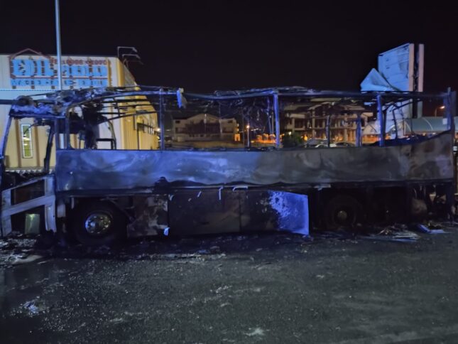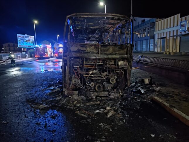 CORIGLIANO ROSSANO Un minibus da 30 posti è stato arso dalle fiamme questa notte, intorno alle quattro, a Mirto Crosia.
