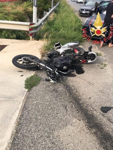 Ferito il conducente della moto che è stato affidato al personale sanitario del Suem 118 per le cure del caso e successivo trasporto in ospedale.