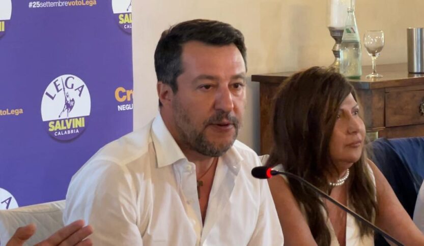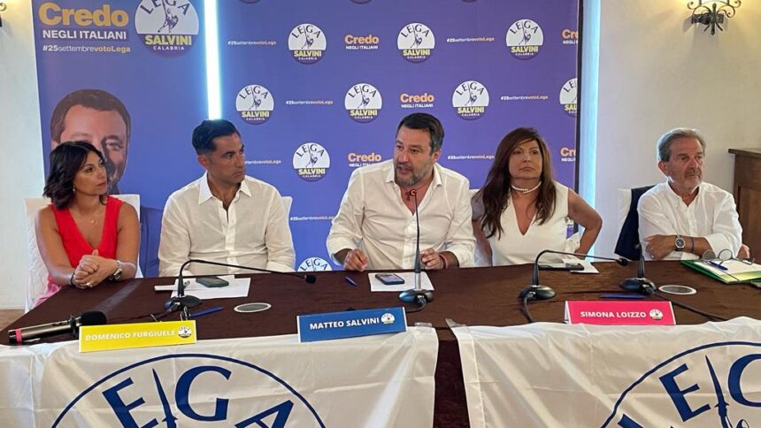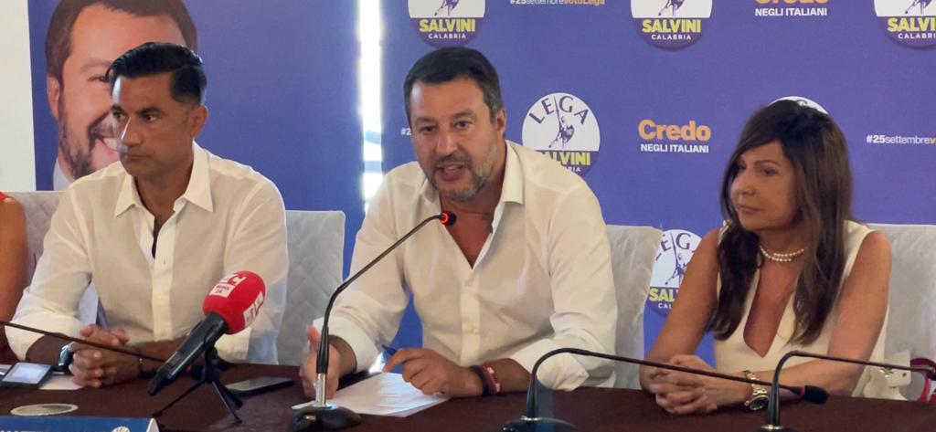 Prima, il leader del Carroccio affronta temi regionali e nazionali. Al suo fianco siedono i candidati della Lega, Simona Loizzo, Domenico Furgiuele, Mariacarmela Iannini e Giacomo Saccomanno.