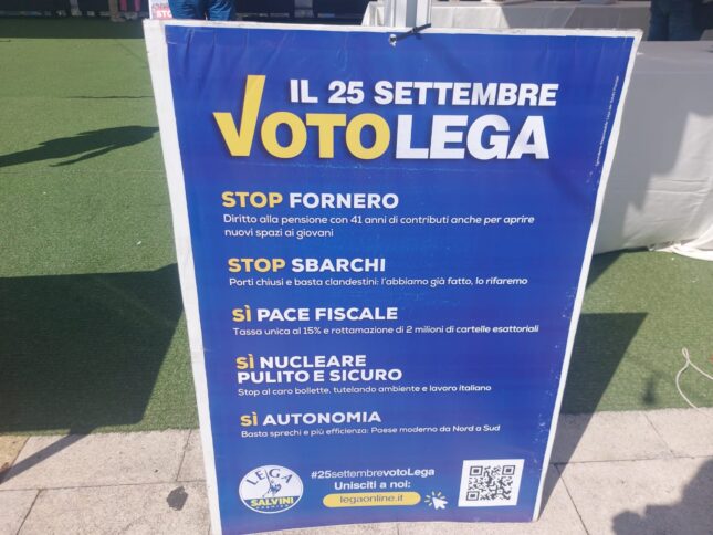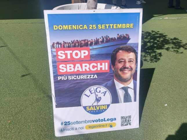 REGGIO CALABRIA Su un cartello il suo sorriso in primo piano e sullo sfondo una imbarcazione con a bordo migranti. “Stop sbarchi” è il leitmotiv della campagna elettorale di Matteo Salvini. Nuove elezioni, vecchi cavalli di battaglia per il leader della Lega che in occasione del tour elettorale, anche nel corso della sua terza (e ultima) tappa calabrese, dopo Corigliano Rossano e Vibo, non perde occasione per sottolineare che «serve più sicurezza e meno clandestini», dice l’ex Ministro dell’Interno a Reggio Calabria, terra sempre più meta di approdo per i disperati che attraversano il Mediterraneo. «Lo abbiamo fatto e lo rifaremo», recita il cartello – con riferimento alla chiusura dei porti – che sintetizza i punti salienti del programma elettorale del Carroccio.