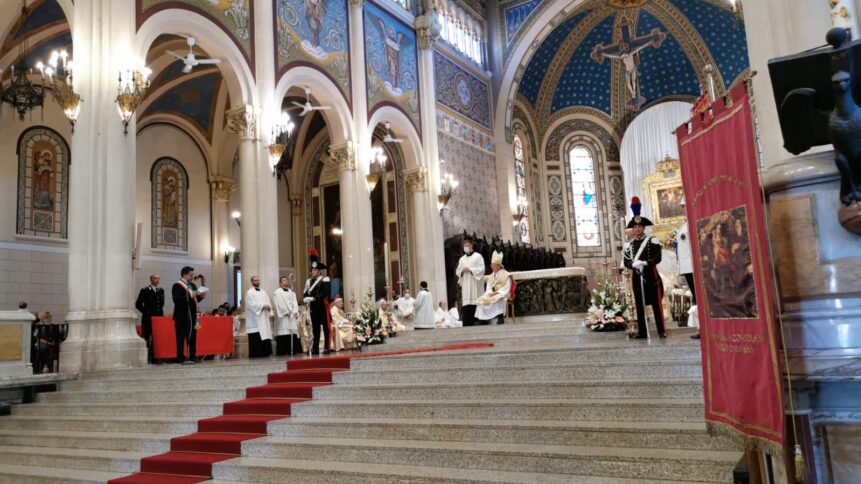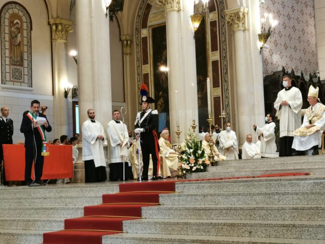 Qui, ai piedi dell’altare di questa Basilica Cattedrale, l’Amministrazione si rivolge alla celeste Patrona della Città, quale identitario retaggio di rinnovata testimonianza di atto di fede e comunione.