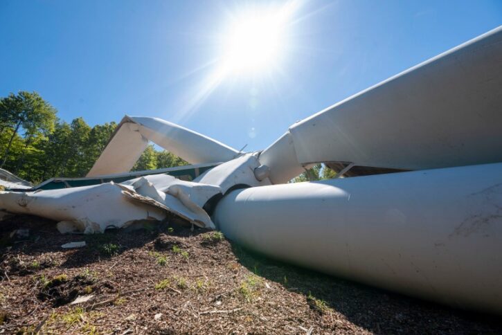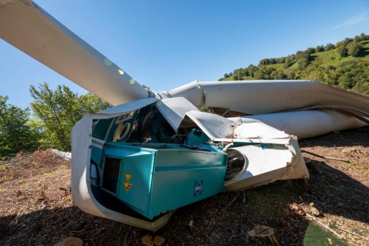 La turbina “spezzata” nel parco eolico di San Sostene. Le immagini (e le preoccupazioni) sui social