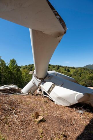 SAN SOSTENE Le foto della pala eolica distrutta sono apparse su Facebook qualche giorno fa. E si trascinano dietro un carico di dubbi che il sindaco di San Sostene prova a fugare. Nel cuore del parco eolico che insiste in quel comune, gestito dalla “Eolica Sud”, c’è una turbina andata in pezzi e adagiata sul terreno. Un architetto, Walter Fratto, ha scattato una serie di immagini (quelle che vede nella fotogallery sono tratte dal suo profilo Facebook) per poi pubblicarle sui social con qualche commento preoccupato. «Le strade che raggiungono “il Parco” – scrive – sono dai 10 ai 15 metri con raggio curvatura almeno di 50 m. Un vero sfregio al bosco. Il posto era pieno di auto nuove, senza contrassegni, che andavano e venivano dalle pale. Un solo pick up era con contrassegni. C’erano pure vigilantes che non facevano passare con l’auto. Ho messo la macchina fotografica in un cesto per funghi. Gli operai acrobatici che si vedono, nei pochi minuti ripresi da me, passavano due prodotti sulle pale e le pale tornano bianche». Poi le ipotesi sulla genesi del danno e sulla tempistica: «La pala è probabile sia caduta a maggio (c’è già su Google Maps)».