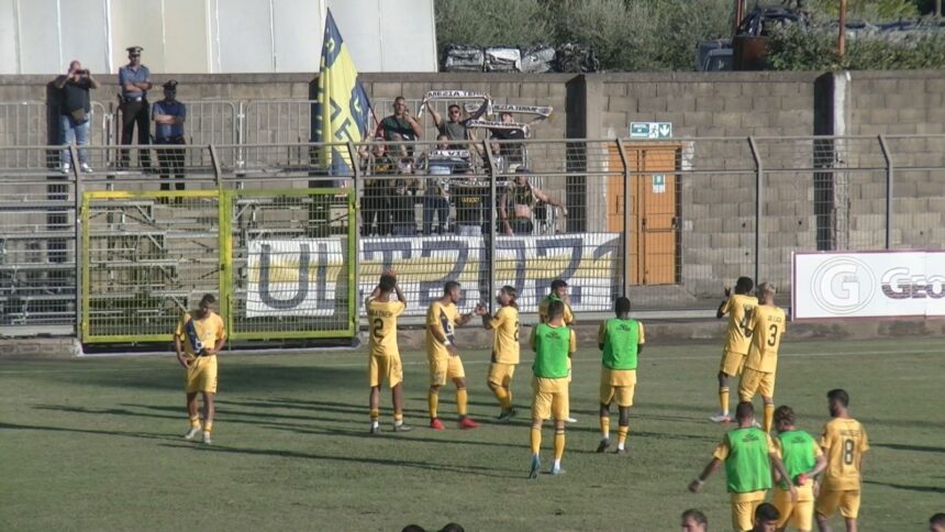 LAMEZIA TERME Prova di forza dell’Fc Lamezia che sbanca anche il campo di Aci S.Antonio superando l’Acireale per 2-1. Così, dopo tre gare, la squadra di mister Novelli veleggia a punteggio pieno in vetta alla classifica con la corazzata Catania. Campo non agevole quello siciliano per i gialloblù lametini vista la voglia di punti del pericolante e contestato Acireale, solo un punto dopo due gare e col tecnico Marchese già in discussione, tanto da essere esonerato domenica sera dopo la seconda sconfitta in tre gare proprio contro il Lamezia. Maltese e compagni si sono presentati in campo con la solita autorevolezza ammirata già in questo avvio di stagione e, dopo 98’ minuti di intensa battaglia, l’hanno spuntata di misura ma con merito.
