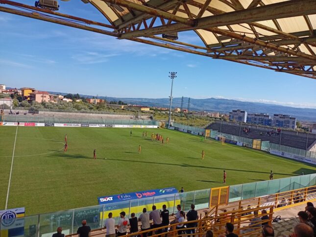 Ripresa con gli stessi effettivi ed il Lamezia sembra aumentare il ritmo per non continuare ad essere prevedibile come accaduto sovente nel primo tempo. Bravo Borgia (5’) sulla destra a vedere involarsi sul lato opposto Terranova, che entra in area sempre a contatto con un difensore, arrivato a tu per tu con Dolenti in uscita gli tira però addosso, ma occorre finalizzare prima. Altri 14 minuti ed ecco il nuovo vantaggio ospite con altro errore del Lamezia: punizione vicino all’angolo di Baglione che finta il cross e dà poco fuori il limite all’ottimo ed isolato Cutrona. Il classe 2004 non riesce però a tirare per un rimbalzo fasullo ma in qualche modo smarca in area D’Agosto. Anche lui si produce in un sinistro fortunoso che beffa Mataloni sul primo palo. Un gollonzo diciamo così.