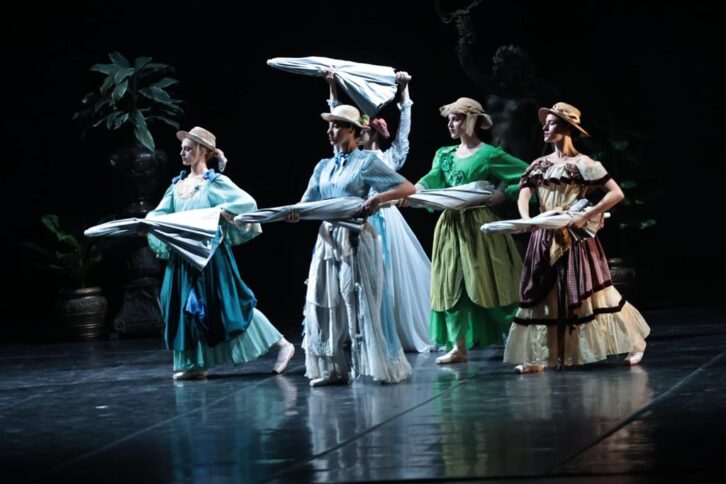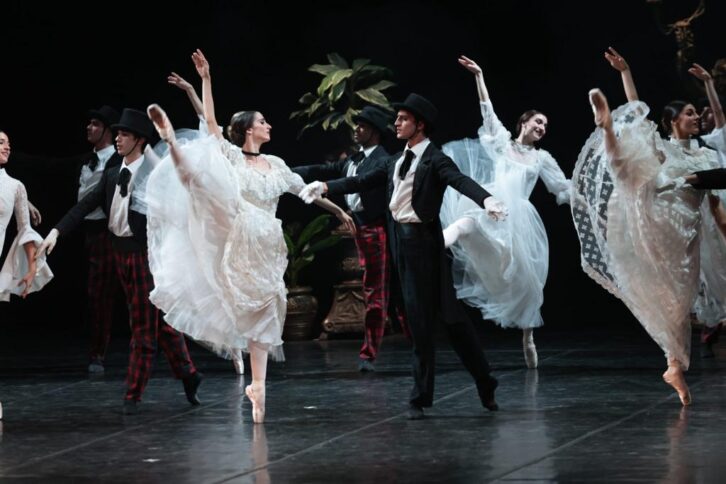 Il genio onirico di Franzutti ha focalizzato l’attenzione sulle diverse fasi della vita di Maria Callas. Dolori e sentimenti catturati secondo le sfumature più tipiche di ogni passaggio della sua vita, declinati attraverso l’eleganza di un corpo di ballo capace di esprimere le infinite sfaccettature di una narrazione voluta dal coreografo. Ballerini che hanno confermato di possedere le elevate doti tecniche che hanno portato la Compagnia ad essere tra le più importanti d’Italia. Nuria Salado Fustè dimostra di essere a suo agio nel ruolo di Maria Callas/Violetta Valéry, così come Matias Iaconanni, nel ruolo di Alfredo Germont, e Carlos Montalvan che interpreta Giorgio Germont.