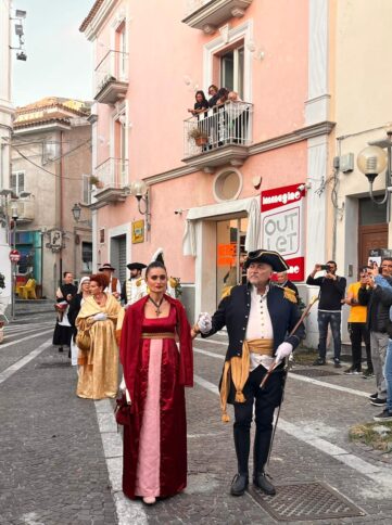 Su queste coinvolgenti premesse, che riportano alle gesta della città, nel pomeriggio di ieri il corteo storico, con al seguito le rappresentanze militari e i sindaci di molti comuni del territorio del basso Tirreno Cosentino e della provincia di Cosenza, con in testa i primi cittadini di Amantea, Vincenzo Pellegrino, e di Cosenza, Franz Caruso, che nel suo saluto alla città di Amantea ha sottolineato il valore oltremodo ampio del gemellaggio tra la Fiera di Amantea e quella di San Giuseppe del capoluogo cosentino, si è mosso a partire dal Campus Temesa “F. Tonnara” per attraversare il centro cittadino e confluire nelle strade e nelle piazze centrali amanteane, costituite da Viale Margherita, piazza Commercio e via Vittorio Emanuele, con tappa finale in piazza Cappuccini, dov’era posizionato il grande palco che ha ospitato gli attori in costume d’epoca che poi hanno dato vita alla rappresentazione della nomina del Mastro Giurato.