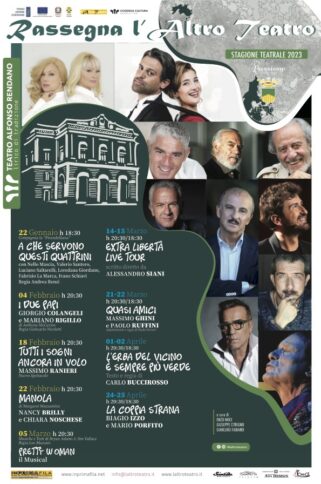 COSENZA Domenica 22 gennaio, ore 18.30, si alzerà il sipario su “La Rassegna L’AltroTeatro” sul palco dello storico Teatro A. Rendano. Finanziato dalla Regione Calabria, quale evento storicizzato- sull’avviso pubblico per la selezione e finanziamento di interventi per la valorizzazione del sistema dei beni culturali, la qualificazione e il rafforzamento dell’offerta culturale- vede, inoltre, il supporto dell’Amministrazione comunale di Cosenza. Organizzato dalla società “L’AltroTeatro” guidata dal gruppo di operatori del mondo dello spettacolo in Calabria: Enzo Noce, Giuseppe Citrigno e Gianluigi Fabiano.