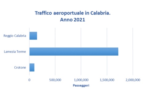 Per il Dipartimento Mobilità della Regione «l’aeroporto di Lamezia Terme è il più grande e importante scalo della Calabria. In pochi anni, con il considerevole aumento del traffico passeggeri, si è consolidato quale grande e privilegiata porta d’accesso alla regione. Nel periodo 2001-2019 ha fatto registrare il raddoppio dei movimenti cui ha fatto seguito un incremento dell’utenza del 308%, raggiungendo il volume massimo di passeggeri nel corso del 2019 superando la soglia di 3 milioni di utenti. Nel 2021 il traffico passeggeri ha registrato un significativo incremento (+79% in confronto con il 2020) non sufficiente a colmare il gap con i valori del 2019».