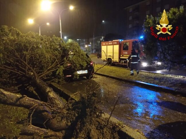 Oltre trenta gli interventi dei vigili del fuoco nel comprensorio. Danneggiata la facciata di un palazzo e alcune auto