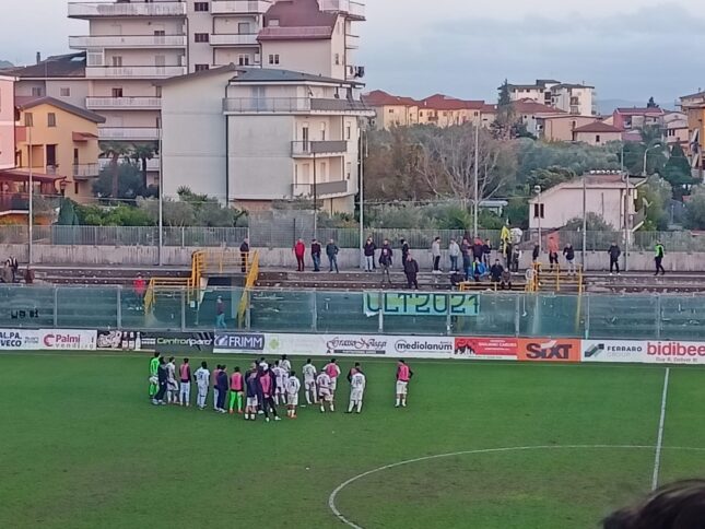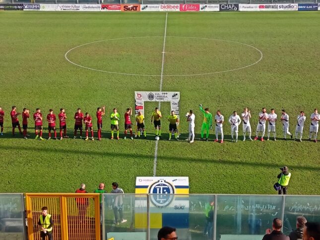 TABELLINO FC LAMEZIA TERME – LOCRI 1-3FC LAMEZIA TERME (4-3-3): Mataloni; Miliziano, Silvestri, Cadili, De Luca (39’pt Niakate); Maimone (27’st Morana), Maltese, Emmanouil; Alma (39’st Borgia), Crisafi (27’st Fangwa), Terranova (22’st Cunzi). A disp: Martino, Kanoute, Zulj, Abatneh. All. NovelliLOCRI (4-3-3): Iannì; Lucà, Aquino, La Rosa, Paviglianiti; Chiricosta (39’st Ruggero), Dodaro, Romero (32’st Mazzone); Ficara, Carella, Furina. A disp.: Gagliardotto, Zarich, Catalano, Parrotta, Vita, Delfino. All. ManciniARBITRO: Vailati di Crema (Spatrisano-Cozzuto)RETI: 10’st La Rosa (rig.) (L), 11’st Ficara (L), 12’ st Maimone (FC), 41’st Carella (L).NOTE: pomeriggio soleggiato ma freddo; Ammoniti De Luca e Terranova per i locali; Lucà, Romero e Carella per gli ospiti. Spettatori 700 circa. Angoli 10-5. Recupero: 2’pt, 5’st. Osservato un minuto di silenzio per le vittime di Casamicciola.