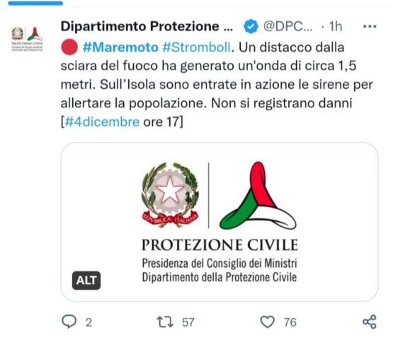 «Sull’isola – continua il Dipartimento – sono entrate in azione le sirene per allertare la popolazione. Dalle verifiche effettuate, non sono stati segnalati danni a persone o cose. Il Dipartimento continuerà a eseguire l’evoluzione dell’evento in costante contatto con le autorità locali e Ingv».