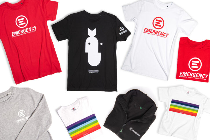 Una grande novità di quest’anno sono gli accessori in pelle di Cartiera, laboratorio di moda etica che realizza borse e marsupi recuperando pelle e tessuti di alta qualità, creando opportunità di lavoro per giovani immigrati ed ex richiedenti asilo. Come ogni anno, non mancano t-shirt e felpe: dalle classiche rosse con logo Emergency a quelle con le illustrazioni contro la guerra, per dichiarare apertamente il proprio no all’odio e alla violenza.