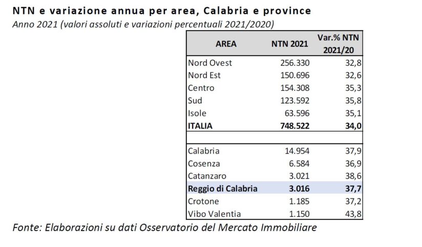 Il rapporto restituisce anche un’analisi del trend del mercato immobiliare residenziale nazionale; si evidenzia una significativa ripresa rispetto all’anno precedente, con 750 mila abitazioni compravendute, in rialzo del +34% rispetto al consuntivo del 2020. Il numero di abitazioni compravendute nella Città Metropolitana di Reggio Calabria ammonta a 3.016, in crescita del +37,7% rispetto al 2021. La dinamica favorevole nel 2021, associata alla scarsa domanda del periodo pandemico, la dinamica dei prezzi dell’energia e la scarsità di alcuni materiali e dotazioni utili alla produzione, hanno comportato un rilevante incremento dei prezzi dei materiali da costruzione e dei servizi di supporto.