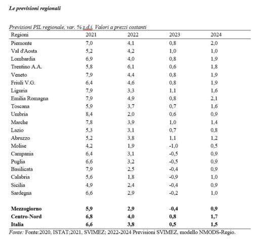 «I primi segni di cedimento si sono visti già nel corso dello scorso anno con la frenata in Calabria della crescita del PIL dal 5,6% del 2021 all’1,8% del 2022 (inferiore al +2,9% del Mezzogiorno). Arretramento che, per il 2023, rischia di diventare recessione, perché mentre per l’Italia si prevede una crescita del PIL dello 0,5%, in quasi tutto il Mezzogiorno si tornerà al segno meno (-0,9% in Calabria). In questo quadro, incide significativamente la previsione di un forte calo dei consumi dovuto al mix di alta inflazione e salari stagnanti. Solo una piena implementazione delle risorse previste dalle politiche di coesione e dal Pnrr potrebbe scongiurare, attraverso una forte crescita degli investimenti, una flessione del Pil».
