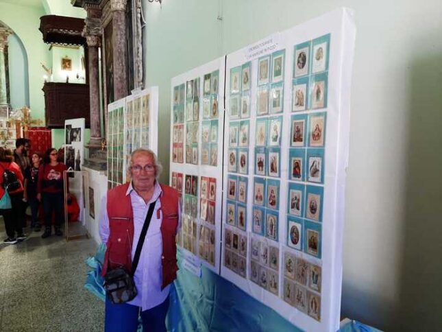 TAVERNA Oltre 110 mila santini religiosi raccolti in più di 40 anni di continua e instancabile ricerca: li ha collezionati tra Calabria e altre regioni, paesi e città dove gli è capitato di recarsi (una su tutte il Piemonte dove è stato spesso), Antonio Pullano, pensionato, che in tutti questi anni ha coltivato con tenacia e determinazione la sua insolita e originale passione. Adesso ne possiede una quantità davvero notevole che conserva nella sua abitazione di Taverna. In bianco e nero o a colori, incise o in xilografie a bulino, su carta semplice o impresse su pergamena da artisti, antiche e moderne: ce ne sono di ogni foggia e valore e coprono un arco temporale che va dal ‘700 ai giorni nostri attraversando i vari periodi storici come raccontano del resto colori e sfumature dei vari soggetti religiosi riprodotti. Riuscire a visionare tutte queste immaginette sacre sarebbe un’impresa. Alcune, davvero molto antiche, sono finite nella singolare raccolta di Pullano dopo acquisti, anche piuttosto onerosi, nel circuito nazionale e anche internazionale dei collezionisti e degli antiquari. Tante gli sono capitate per mano quasi per caso.