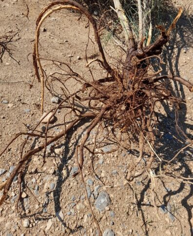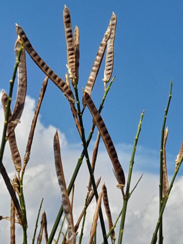 La Ginestra più diffusa in Calabria è la specie Spartium junceum che appartiene alla famiglia delle leguminose, è un arbusto il cui fusto di consistenza legnosa molto ramificato e contorto può raggiungere un’altezza di oltre 3 metri. Le ramificazioni nel primo anno di formazione, comunemente chiamate vermene, sono erette a sezione trasversale di forma circolare, spessore a livello mediano di 3-6 mm circa e una lunghezza molto variabile che può superare anche un metro. Le vermene, di colorazione verde intenso per la presenza di clorofilla, sono comprimibili in quanto contengono all’interno un tessuto parenchimatico, di colore bianco, di consistenza spugnosa e facilmente asportabile. Queste ramificazioni dette anche giunchiforme sono ricche di cellulosa e si utilizzano per la estrazione delle fibre. Le foglie sono di tipo semplice, rade e cadono precocemente già in estate. La fotosintesi, oltre che nelle pochissime e piccolissime foglie, avviene principalmente nelle vermene. I fiori, inconfondibili, sono di colore giallo e molto profumati. La fioritura sulla pianta è scalare. I frutti sono dei baccelli di larghezza da 4 a 8 mm circa e lunghezza da 50 a 80-100 mm circa che, all’inizio presentano una colorazione verde e a maturazione diventano di colore marrone. Ogni baccello può contenere da 5-6 fino a 10-15 semi. Il peso dei mille semi è pari a circa 15 grammi. L’epoca di fioritura e la conseguente formazione dei baccelli varia a seconda dell’altitudine, inizia già da fine aprile nelle zone più basse ma può avvenire anche a maggio/giugno man mano che aumenta l’altitudine. Durante l’estate, i baccelli maturi, molto disidratati, nelle ore più calde si aprono istantaneamente, determinando la spinta dei semi a notevole distanza dalla pianta madre. I semi che raggiugono la superficie del terreno, appena si verificano le condizioni di umidità e temperatura adatte, germinano dando origine a nuove piantine di ginestra. Le radici della Ginestra sono molto profonde, possono superare i 2 metri e, come tutte le leguminose, hanno un grande valore ambientale in quanto sviluppano dei tubercoli, conseguenza del rapporto di simbiosi con i batteri del genere Rhizobium. Questi batterisono in grado di fissare l’azoto gassoso atmosferico trasformandolo in forme nitriche e ammoniacali facilmente assimilabile dalle piante e arricchiscono il terreno di una discreta quantità di azoto che rimane a disposizione di eventuali colture successive. La ginestra quindi, come tutte le leguminose fornisce una concimazione azotata naturale, gratuita, a impatto ambientale nullo ed alternativa alla concimazione azotata minerale fatta con prodotti chimici di sintesi, la cui produzione, trasporto e distribuzione si tradurrebbe in emissione di anidride carbonica nell’ambiente. Le radici robuste e profonde della ginestra hanno inoltre un effetto conservativo dei suoli in quanto, penetrando in profondità, mantengono una buona struttura del terreno, facilitando la penetrazione dell’acqua, limitandone così il ruscellamento e preservandolo anche dall’erosione e da altri fenomeni di degrado. Pertanto, la Ginestra, spontanea o coltivata, è una pianta molto utile a livello ambientale e a fine ciclo vegetativo lascia i terreni in condizioni pedologiche sicuramente migliori di come li ha trovati.