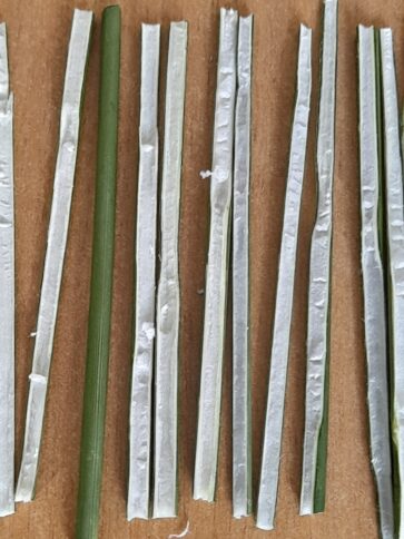 All’industria di trasformazione, per l’estrazione delle fibre, devono essere destinati i rametti giovani, principalmente quelli di un anno (vermene) in quanto sono più ricchi di cellulosa e poveri di lignina. Come anticipato, la pianta di ginestra, una volta tagliata al livello del colletto, ha buona attitudine al ricaccio di nuove piantine (polloni) che si accrescono velocemente. Pertanto ceduando i ginestreti esistenti con l’utilizzo di comuni macchine forestali, dalle ceppaie si svilupperanno i nuovi polloni da cui avranno origine le nuove piantine costituite principalmente da vermene che potranno essere raccolti più agevolmente per la trasformazione industriale. Nei ginestreti situati specialmente su terreni ex seminativi si può sperimentare la raccolta meccanizzata dei rametti di un anno (vermene), mediante l’uso di macchine mietilegatrici che possono essere di tipo semoventi dotati di motore proprio o di tipo trainato. Tradizionalmente queste macchine, prima dell’avvento della mietitrebbia, venivano utilizzate per la raccolta e legatura del frumento e di altri cereali a paglia, per la successiva trebbiatura con le tradizionali trebbie a punto fisso. Sono dotate di un apparato falciante con doppia o singola lama oscillante per lo sfalcio del vegetale e di un apparato legante per la legatura con lo spago, sottoforma di mazzetti. Con le opportune regolazioni, è possibile sperimentare l’utilizzazione di queste macchine per la raccolta della ginestra. Come già detto, con la ceduazione dei ginestreti si sviluppano nuove piantine costituite principalmente da vermene che nella ginestra sono la sede principale della fotosintesi clorofilliana. Sarebbe interessante verificare se con questi tagli aumenta il numero di vermene ed in particolare la superficie fotosintetizzante per unità di superficie di terreno rispetto al ginestreto preesitente prima della ceduazione. Se così fosse con la ceduazione dei ginestreti aumenterebbe la superficie fotosintetizzante che determinerebbe un maggiore quantitativo di anidride carbonica assorbita con effetti positivi sull’ambiente.