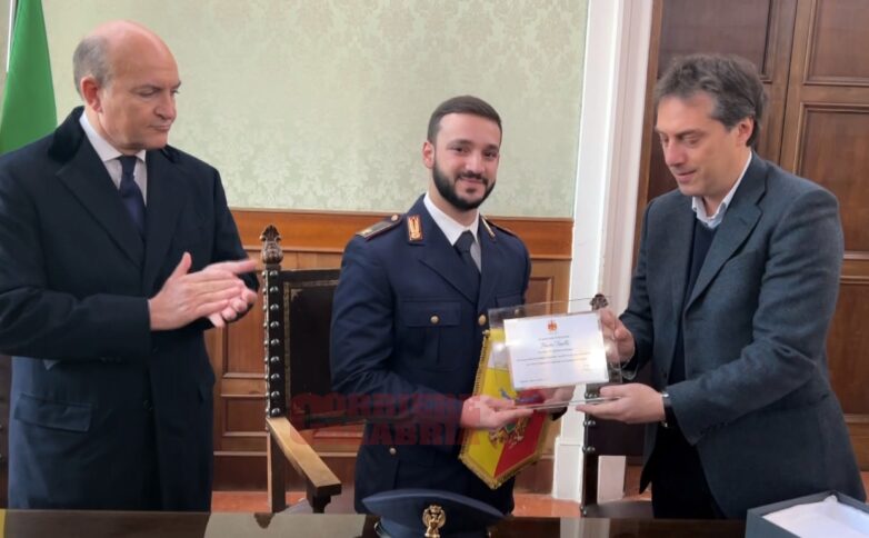 Ad accompagnare Tinello al Comune anche il padre, carabiniere in pensione, e il questore di Catanzaro, Maurizio Agricola, che ha rimarcato «l’impegno quotidiano che poi si traduce in gesti straordinari, un impegno che fa parte del bagaglio professionale di un agente ma anche anche di una unicità delle persone». Infine, a salutare Tinello anche l’assessore alla sicurezza del Comune di Catanzaro, Marinella Giordano, già dirigente della polizia di Stato: «È un momento molto emozionante, per me un doppio orgoglio visto che alla polizia mi lega un filo indissolubile e ora da amministratore della città mi sento davvero felice di poter abbracciare un nostro giovanissimo concittadino che ha abbracciato da poco la professione ma ha già dato un esempio mirabile delle proprie qualità». (redazione@corrierecal.it)