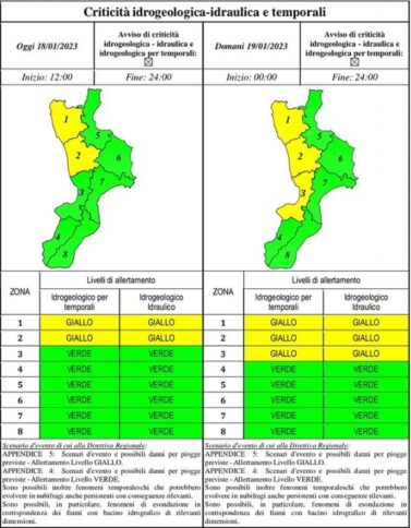 CATANZARO Allerta arancione domani per rischio idrogeologico su gran parte della Campania e gialla in Umbria, Molise e Basilicata, sul restante territorio della Campania e su alcuni settori di Sardegna e Calabria. Lo indica un nuovo avviso meteo della Protezione civile.