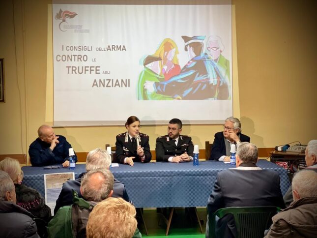 A conclusione della campagna di sensibilizzazione sulle truffe ai danni di persone anziane, oggi è avvenuto un incontro presso il Centro di Aggregazione Sociale della città di Vibo Valentia denominato “Amicizia e Solidarietà”. È intervenuta il Tenente Veronica Pastori, Comandante del Nucleo Operativo e Radiomobile. «L’Arma dei carabinieri – ha detto – in realtà è formata da uomini, da carabinieri. E i carabinieri possono essere i nipoti di ciascuno di loro: tanti nipoti che sono disseminati sul territorio, sono raggruppati in stazioni e sono punti di riferimento; e ci si possono rivolgere senza alcun tipo di remora e senza alcun tipo di giudizio. Noi conosciamo queste dinamiche e ci prepariamo per contrastarle e quindi sappiamo che attraverso il dialogo e attraverso il contatto, noi siamo in grado di risolverle e di dare risposte concrete. Quello che vogliamo rinsaldare ogni giorno con questi incontri – ha proseguito Pastori – è proprio la possibilità di far capire che siamo dei punti di riferimento, che siamo a loro vicini e che non siamo le istituzioni intese in senso lato o, semplicemente come sovrastrutture dello Stato, ma che siamo istituzioni intese come tanti piccoli nipoti che ogni giorno lavorano sul territorio e sono vicini a loro, anche quando spesso i loro nipoti sono lontani per lavoro. Hanno comunque tante persone che sono al loro servizio, sono vicine a loro e vicino alla comunità».