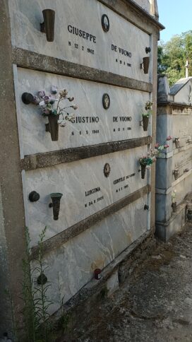 Il Corriere della Calabria li ha raccolti anni fa, nell’estate del 2019, quando sono state scattate le foto (e girato il breve video) che vedete in pagina. Materiale legato a un altro dei misteri che avvolge il personaggio. La tomba di Giustino De Vuono si trova nel cimitero di Scigliano: una sobria lapide con il nome del legionario e una foto. In paese non tutti sono convinti che lo “scotennato”, poco commendevole soprannome del killer, sia effettivamente sepolto lì.