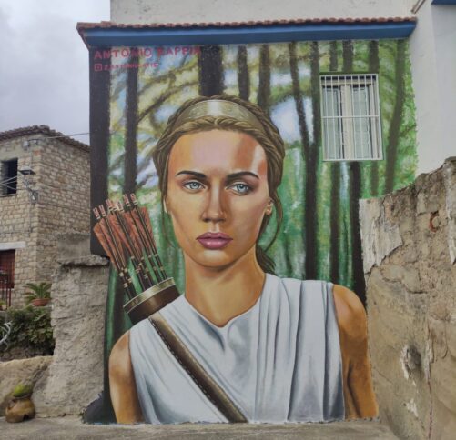 E a proposito di Aspromonte, il nuovo murale di Sant’Agata del Bianco che raffigura Artemide, la dea dei boschi, della caccia e della luna, collega idealmente la montagna con il borgo di Saverio Strati. Un borgo che proprio grazie all’arte è in grado di mostrare il suo lato più affascinante ai tanti visitatori catturati dalle opere realizzate negli ultimi anni.