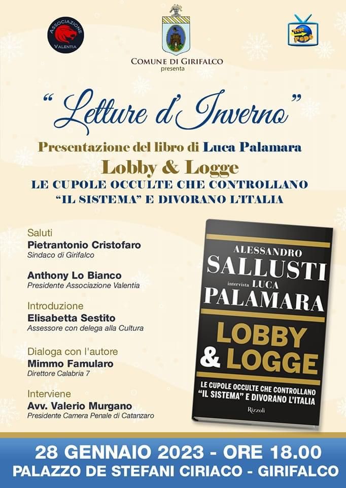 GIRIFALCO Girifalco sempre più centro culturale d’eccellenza e il nuovo anno si apre con la rassegna “Letture d’inverno” giunta ormai alla sesta edizione tra un susseguirsi continuo di autori diversi provenienti da ogni parte d’Italia. Nella splendida cornice di Palazzo De Stefani-Ciriaco è in arrivo adesso Luca Palamara per il primo appuntamento della nuova stagione in programma sabato 28 gennaio alle ore 18. I rapporti tra la magistratura e la politica al centro della serata con la presentazione del libro “Lobby e Logge le cupole occulte che controllano il Sistema e divorano l’italia” che il magistrato di origini calabresi ha scritto insieme al giornalista Alessandro Sallusti. Le rassegne, unitamente al Premio Letterario e alle tante iniziative di valenza culturale, nascono nella prima e seconda consigliatura del sindaco Pietrantonio Cristofaro, su iniziativa dell’assessore con delega alla Cultura Elisa Sestito. Un progetto ambizioso e radicato ormai nel tempo che ha trasformato Girifalco in importante baricentro culturale dell’hinterland catanzarese.
