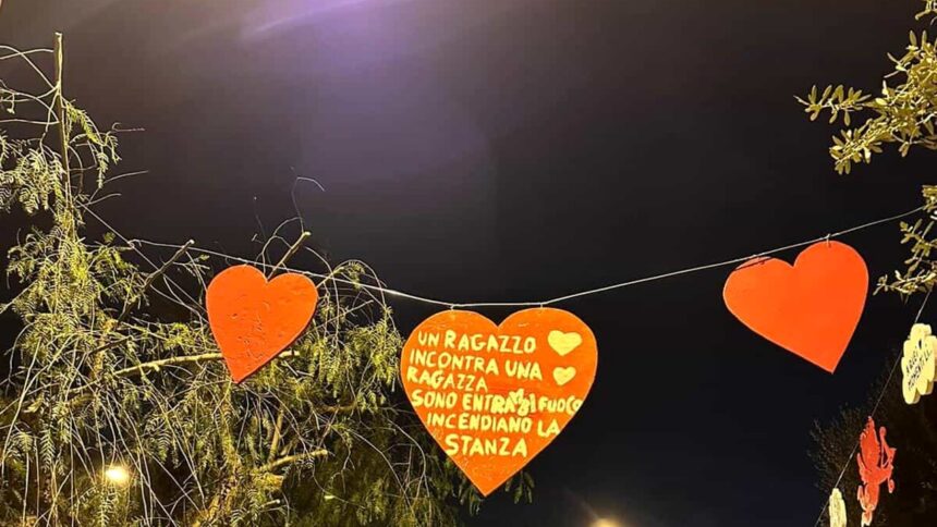 A Melicucco in provincia di Reggio un progetto di alcuni giovani del paese ha fatto inaugurare il Viale dell’amore con opere d’arte e installazioni. Zona romantica con cartello “obbligo di baciarsi”. Nell’era virtuale che ha desertificato le villette degli innamorati un accorato “otto” a chi ha costruito un’idea originale per un attrattore del proprio paese.